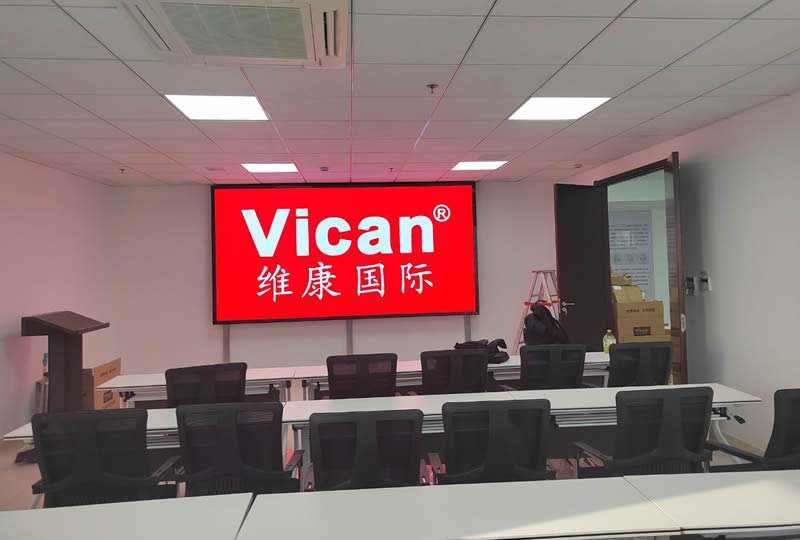 本案例中,维康国际为深圳罗湖某企业提供一套会议室LED显示屏,采用P2全彩LED,大屏幕画面清晰,视觉显示效果好。
