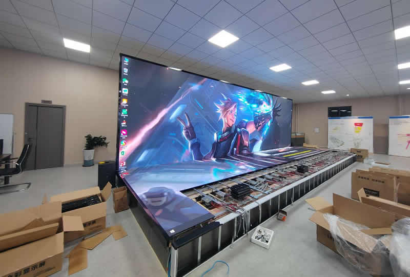 本案例中,维康国际为揭阳市某企业形象展厅提供一套双面LED显示屏,采用90度内折安装,如上图所示,大屏幕显示清晰,色彩丰富。