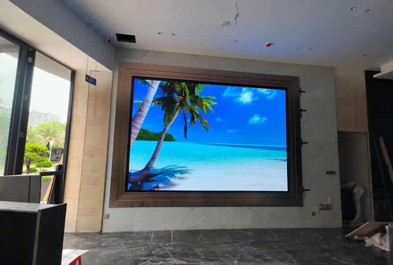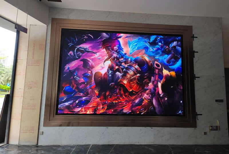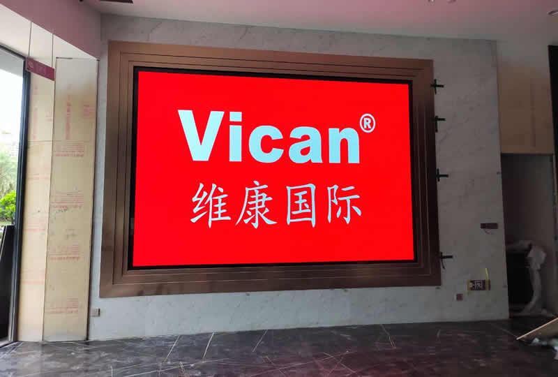 本案例中,维康国际为海南陵水某写字楼大厅提供了一套展示大屏,采用P2全彩LED显示屏,面积为10平方左右,大屏幕显示清晰,色彩鲜艳,视觉体验效果较好。