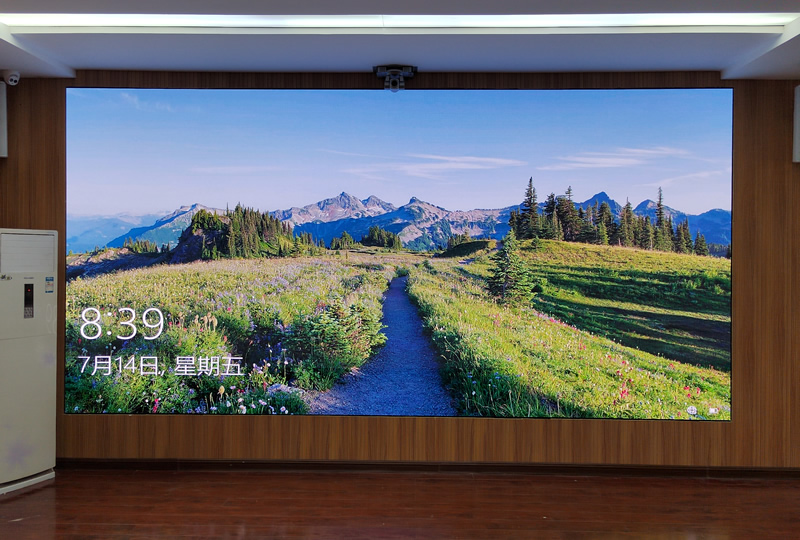 本案例中,维康国际为济南市某人民法院提供一套会议大屏,采用P1.56小间距LED显示屏,尺寸为4.8*2.36米,面积约11平方米,大屏幕高清显示,视觉体验效果很好。