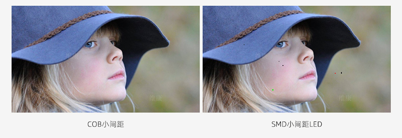 COB小间距LED显示屏直接将LED芯片固定在PCB板上,用封装胶将LED芯片封装;与传统的SMD封装相比,COB封装取消了支架以及通过回流焊由锡膏连接PCB的环节。这样在外力的碰撞下不会操作LED,增加了防护能力。