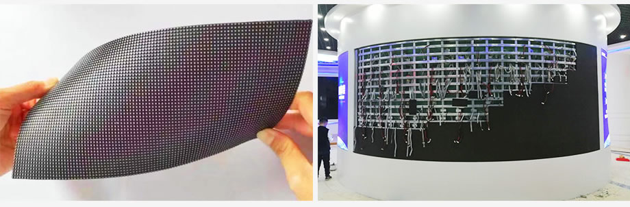 弧形LED显示屏可以采用任何一种点间距的组成,不过基本上都是用的软模组结构,因为软模组可以更好的实现圆弧形效果,拼接起来更加容易。软模组LED显示屏采用的是特殊的材料组成,本身可弯曲,模组柔软。