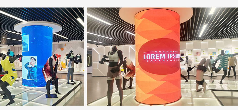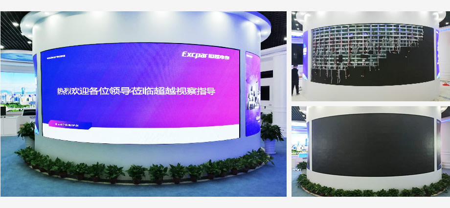 有一些展厅,由于圆柱比较大,所以还可以打造多组LED显示屏,下图就是安装在某集团展厅的一组采用P1.86的软模组组成的圆弧形LED显示屏效果,整个弧形更加自然。