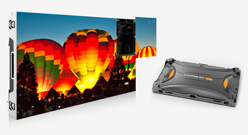 每个箱体由四个模板组成,箱体尺寸600*337.5mm,为16:9比例,这样在拼接时就可以控制整体的长宽比例,防止拼接后画面变形、拉伸。同时采用前维护设计,无线连接,不占用安装空间,清晰走线不杂乱。