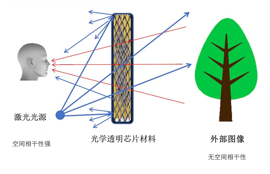 光学数字显示技术,对透明介质材料进行多层结构调整,只会对激光光源方向的光进行调控,对其他方向的光允许完全透过。从而实现全透明、高清晰的图像显示。