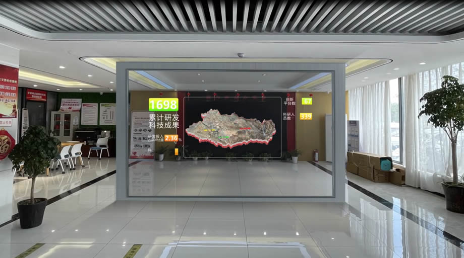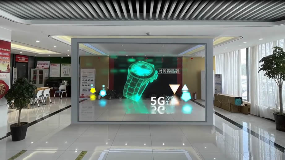 这是一款采用光学数字技术的系那是屏,通过光学屏和光绪实现透明显示。